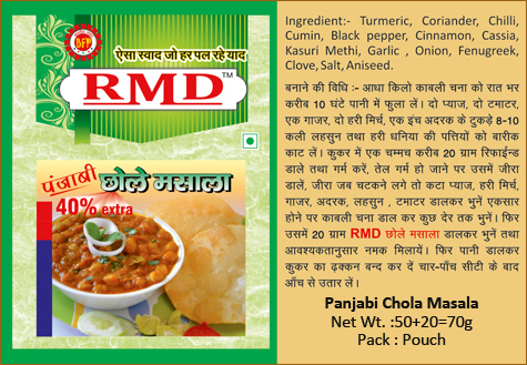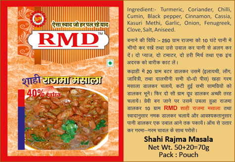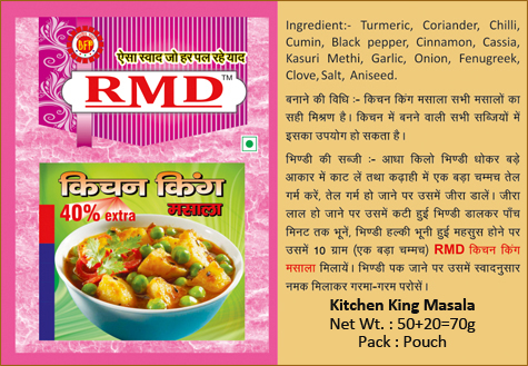 RMD is a brand of Balajee Food Product, Patna, Bihar. A company that associates itself with quality and latest technology. Please visit www.rmdmasala.com for other exciting and novelty spices products. We have wide range of spices of India. Established in 2005 and owned and managed by a professional enterprise, the company its standing in the competitive market. Contact Us